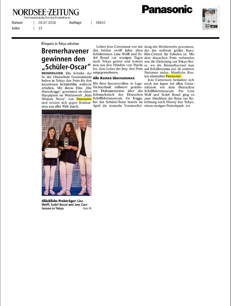 KWN_Tokio_Award_Nordseezeitung_20180727 Veröffentlicht 30. Juli 2018 am 736 × 978 in KWN-Summit in Tokio – Kreativpreis geht nach Bremerhaven